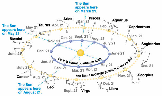 Every day the stars in the sky return to the same place 4 minutes early because the Earth’s orbital movement around the Sun gives a slightly different background of stars each night. This 4 minutes difference every day is because of the difference between the length of a day (24 hrs) and that of an Earth’s rotation (23 hours and 56 minutes).