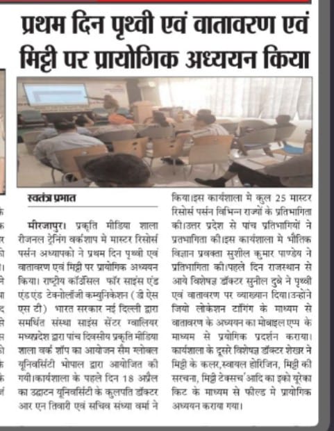 Pratham Din Prathvi Evam Vatavaran evam Mitti per prayogik Addhayan Kiya