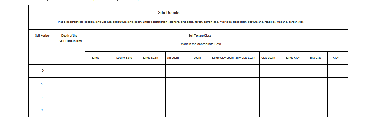 ● Record the soil structure of different samples in a data sheet. An example of data table is given below. You can modify or redesign the data table according to the need.