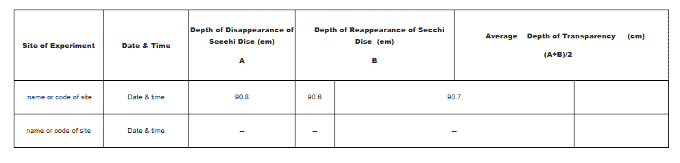 ● Average transparency of a water body can be found by calculating the average of the transparency measured at all points at that water body.