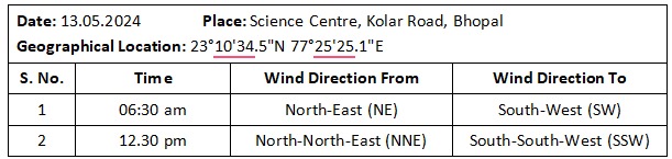 2- Monitor the wind vane at different times for observation of direction wind and record the directions.