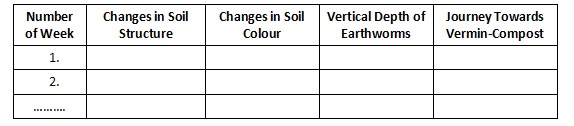 13- Record the transformation of soil and organic material into vermi-compost over a time period (Journey towards vermi-compost).
