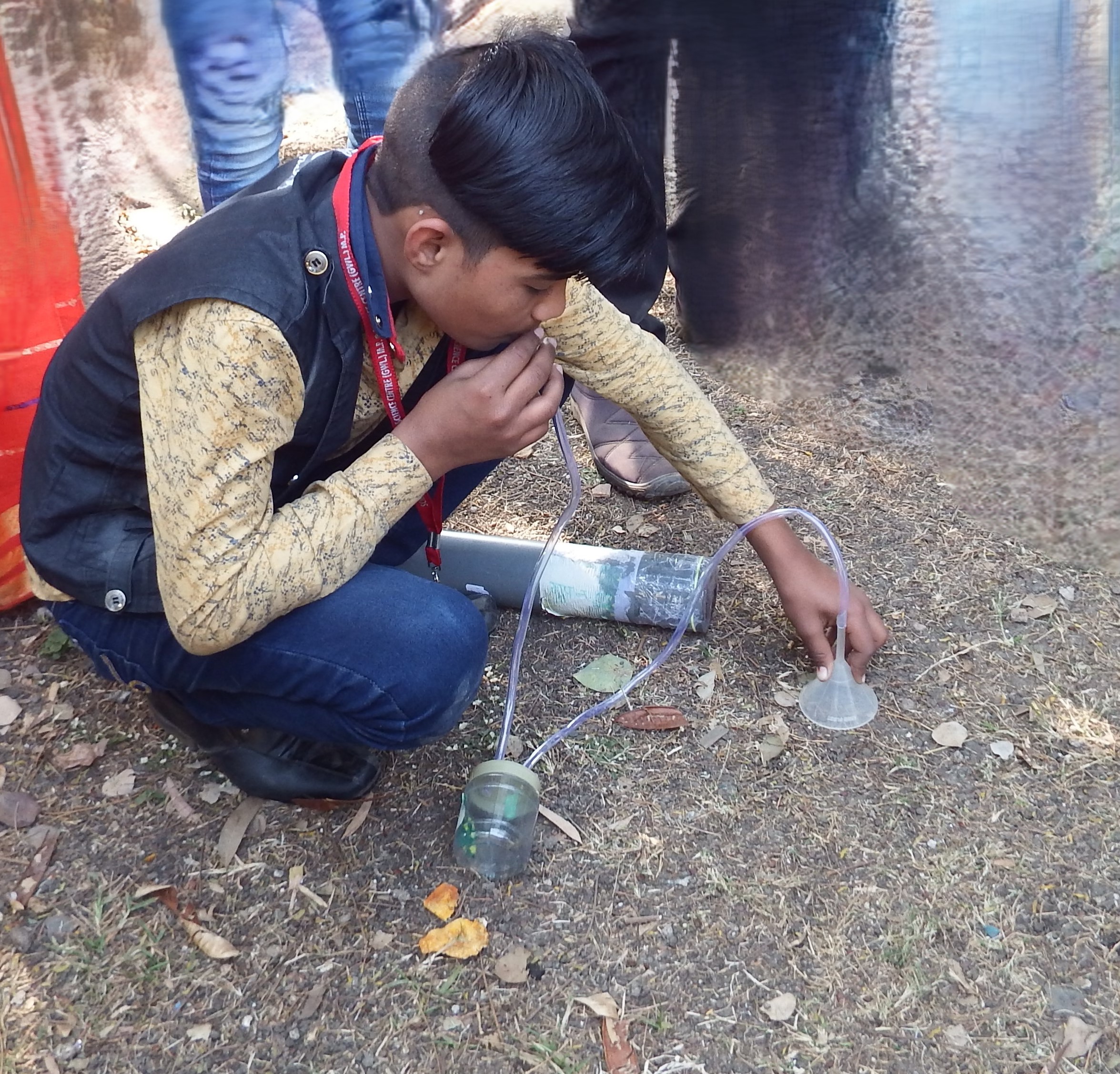 ● By another tube connected to the container, suck the air out so that an air suction would be created in the container and through it in the tube connected with funnel, so that the insect trapped in the funnel would be pulled in the container.