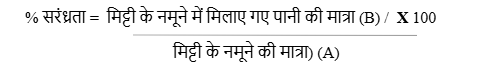 ● मिट्टी के नमूनों की प्रतिशत सरंध्रता की गणना करने के लिए निम्नलिखित सूत्र का उपयोग करें-
