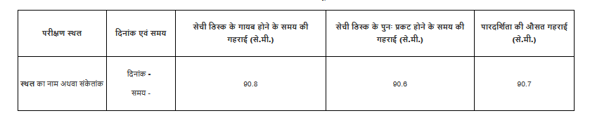 मापी गई गहराई के अवलोकन को व्यवस्थित रूप से सारणीबद्ध किया जा सकता है तथा आगे की गणना की जा सकती है। आंकड़ों को रिकॉर्ड करने और गणना करने के लिए यहाँ एक नमूना तालिका और आँकड़े दिए गए है –
