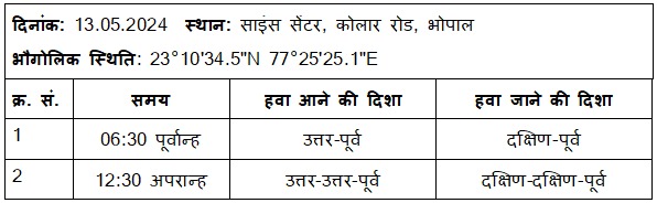 एक दिन में विभिन्न समय पर दर्ज की गई हवा की दिशाओं को दर्ज हेतु तालिका –