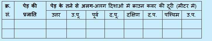 ● अपने क्षेत्र में पाए जाने वाले विभिन्न पेड़ों के मुकुट आवरण का पता लगाएं और उनकी तुलना करें।