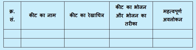4. थलजीवशाला (टेरेरियम) में कीट को परेशान किए बिना उसका निरीक्षण करें और अपने अवलोकनों को आंकड़ा प्रपत्र में दर्ज करें।