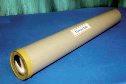 Viewing tube is the simple device that enables the naturalist to look inside shallow water and watch different life forms living in it up to the bottom. Viewing tube is a cylindrical narrow tube made of tough and light weight material with 2-3 inch diameter and length appropriate to dip it up to few feet under the water. Its one end (which is dipped inside water) is closed with transparent film or glass and the other end open outside water where the observer can fix eye and see the objects seen at the underwater end clearly. Viewing tube enables the viewer to reach closer to the aquatic life forms up to the bottom zone without disturbing them or handling them.